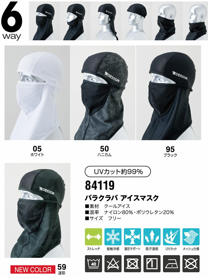 【即日発送】TS-DESIGN フェイスガード バラクラバ アイスマスク UVカット 【夏用】【涼しい・清涼感・爽やか】【クール】目出し帽【紫外線対策・熱中症対策】【春夏向け】 藤和